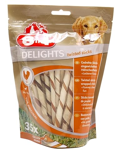 8 en 1 Lot de 5 bâtons torsadés pour chien 190 g