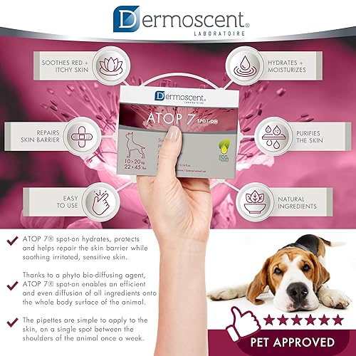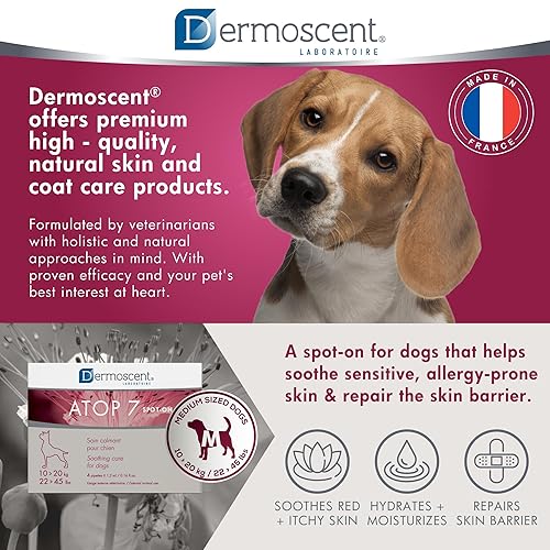 ATOP 7 Spot-on pour Chiens 10–20 kg | Soin Apaisant sans Rinçage | 4 Pipettes x 1,2 ML | Dermoscent