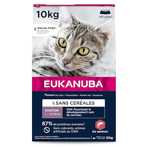 Donnez à votre chaton le meilleur départ dans la vie avec les Croquettes EUKANUBA Grain Free pour Chaton Riche en Saumon. Cette formule sans céréales de 10 kg est conçue pour soutenir une croissance saine et un développement optimal, particulièrement adaptée aux chatons ayant des sensibilités alimentaires ou pour ceux dont les propriétaires préfèrent une alimentation plus naturelle.