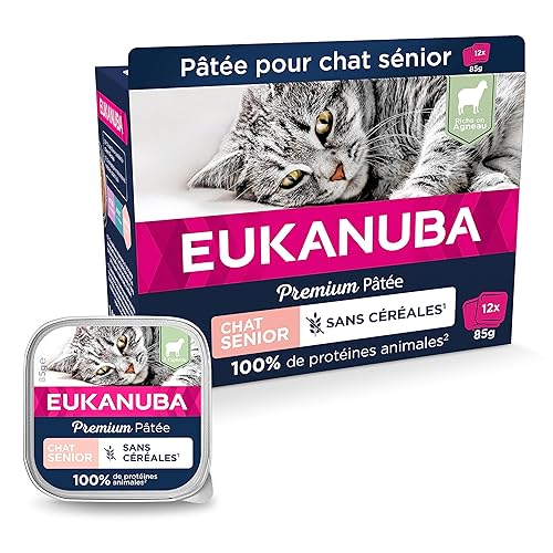 Riche en agneau de qualité, cette pâtée offre une source de protéines hautement digestible, essentielle pour le maintien de la masse musculaire de votre chat âgé. Sa faible teneur en graisses aide à gérer le poids, un aspect important pour les seniors dont l’activité diminue. Enrichie en taurine, elle soutient la fonction cardiaque et la vision, deux piliers de la santé féline. Sans céréales ni gluten, elle est idéale pour les chats sensibles. EUKANUBA s’engage à fournir une alimentation qui respecte la nature de votre chat, sans compromis sur le goût ou la qualité.