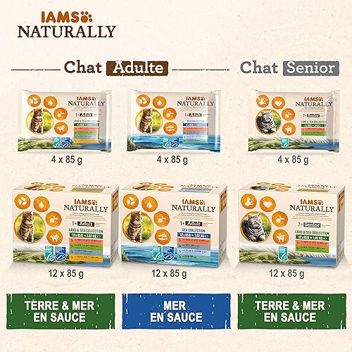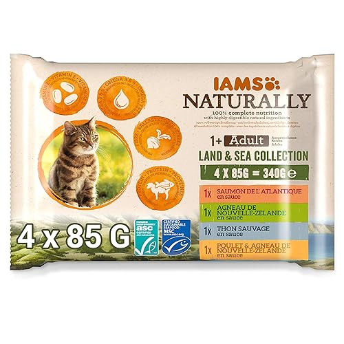 Iams Naturally Nourriture Humide pour Chat Stérilisé ou Non 4 sachets fraicheurs pour 4 Pâtées