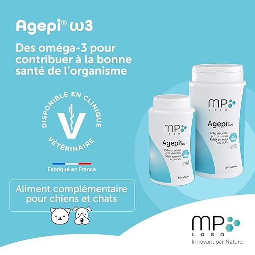 MP Labo Agepi® Omega 3 – 180 Capsules pour Chien et Chat – Riche en Acides Gras Essentiels