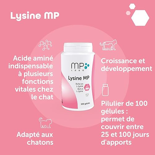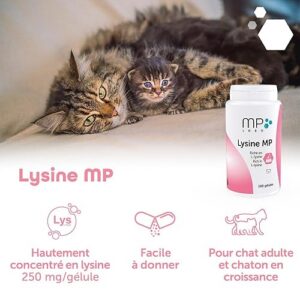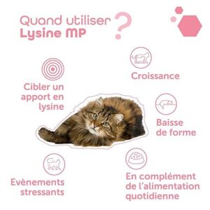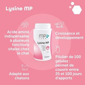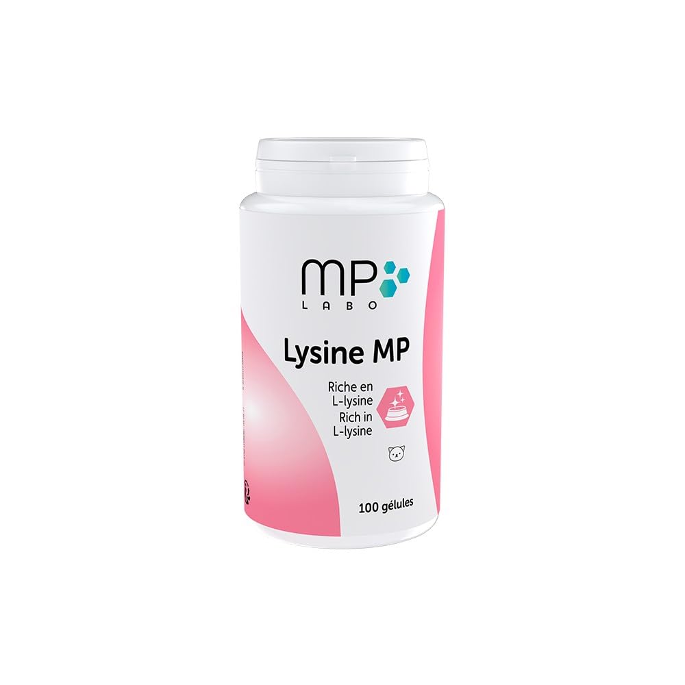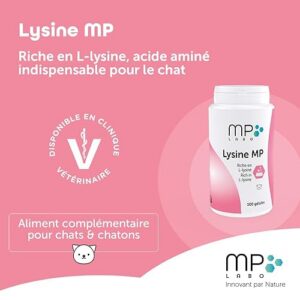 Composition par gélule : Gélatine bovine, Stéarate de magnésium. Additifs nutritionnels : L-lysine monochlorhydrate 250 mg soit 760 977 mg/kg