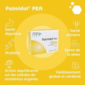 - Favorise un bon fonctionnement des fibres nerveuses dans l’organisme (au niveau de la peau, des articulations, ou du côlon par exemple) grâce au PEA.