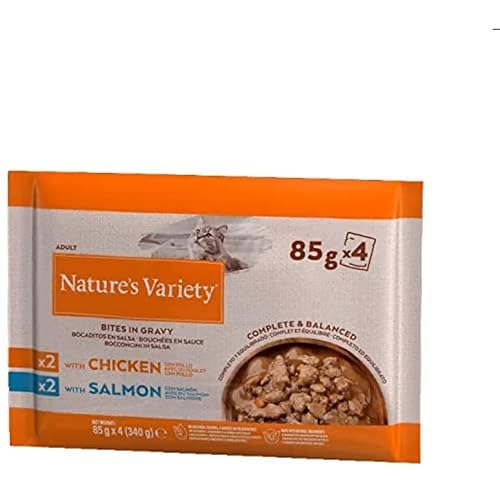 Nature’s Variety Chunks – Bouchées en Sauce – Nourriture Humide per Chats avec du Poulet et Saumon: