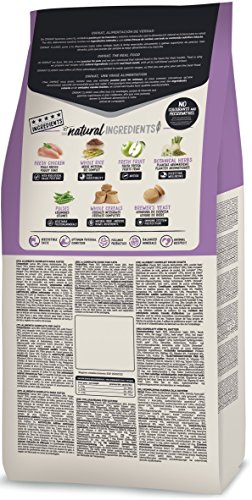 Composition : viandes 36 % (viandes déshydratées 26 %, poulet frais* 10 %), orge complète* (10 %), pois entiers* (9 %), maïs de blé entier* (9 %), protéines de maïs, graisse de poulet, blé entier* (7 %), hydrolysat de saumon (5 %), riz brun* (2 %), levure de bière * (2%), protéines hydrolysé de poulet, pomme fraîche* (1%), huile de saumon, pulpe de betterave, fruits et mannane oligosaccharides, herbes botaniques 0,02% (fenouil*, fleur de camomille*, anis vert*), extrait de yucca shidigera. *Ingrédients naturels COMPOSANTS ANALYTIQUES : Protéine 33%, Teneur en matières grasses 12%, Fibres brutes 4%, Matéria inorganique 8%, Humidité 8%, Calcium 1,3%, Phosphore 1%. Additifs/kg : additifs nutritionnels : vitamine A 15 000 UI, vitamine D3 1 500 UI, vitamine E 100 UI, vitamine C 100 mg, taurine 1 000 mg, cuivre (chélate de cuivre d’acides aminés hydraté) 5 mg, manganèse (oxyde de manganose). So) 30 mg, zinc (oxyde de zinc) 100 mg, zinc (chélate de zinc d’acides aminés hydraté) 7 mg, fer (sulfate ferreux, monohydraté) 30 mg, iode (potassium iodé) 2 mg, sélénium (sélénite sodique) 0,1 mg. Avec des antioxydants naturels.