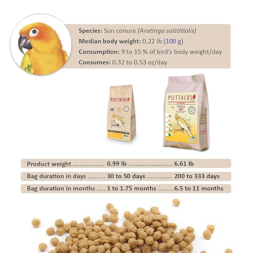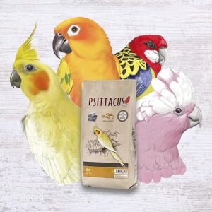 - Mini de PSITTACUS : C’est un aliment extrudé destiné aux espèces qui consomment principalement des graines faibles en gras dans la nature, telles que les nymphes (caroline), la queue de soleil (aratingen) et les cacatoès de galah. Il est adapté pour les oiseaux jeunes et adultes. Livré dans un paquet de 12 kg.