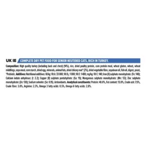 - Contribue au maintien d’un poids adapté aux chats seniors stérilisés tout en proposant une alimentation équilibrée