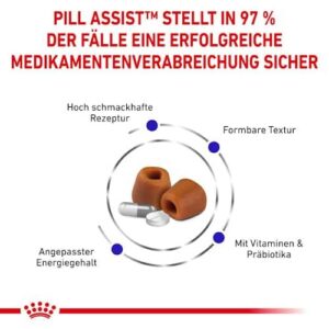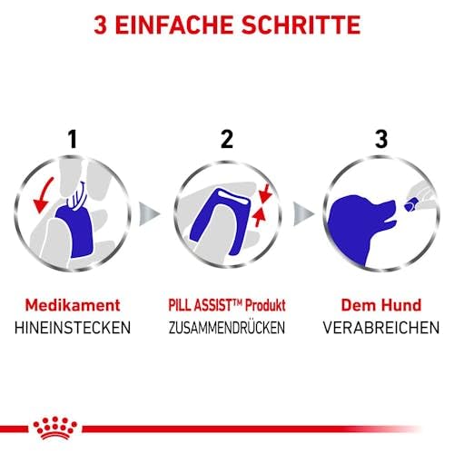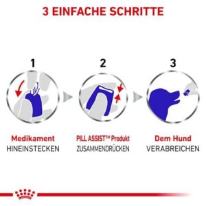 1. Prenez une portion de Royal Canin Pill Assist et façonnez-le autour de la plupart des types et tailles de comprimés et de pilules, pour les couvrir et les déguiser. 2. Administrez le médicament enduit à votre chien.