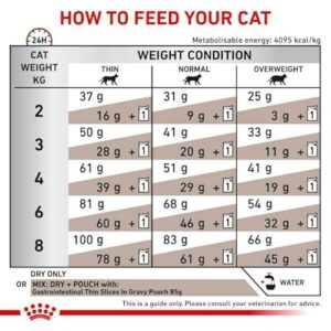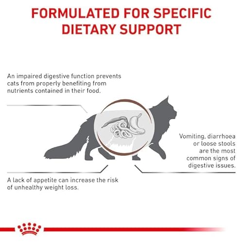 - GASTROINESTINAL – Royal Canin Feline GASTROINTESTINAL est un aliment diététique complet pour chats. Il peut contribuer à soulager les troubles aigus de l’absorption intestinale.