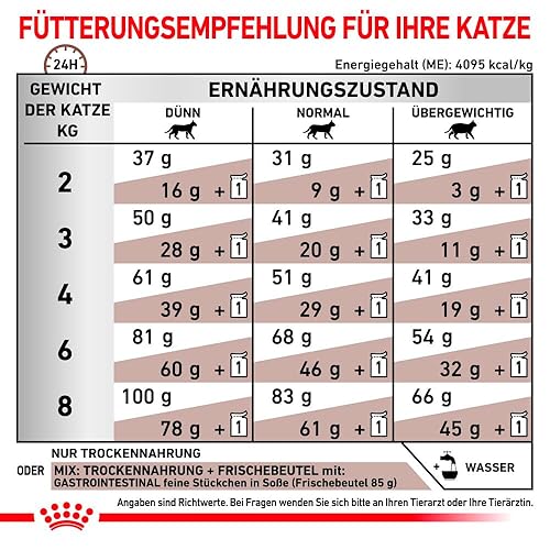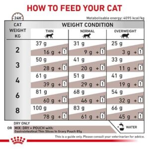 - ✅ DIFFICULTES ACTUELLES ET CHRONIQUES – Royal Canin Feline GASTROINTESTINAL peut être donné en cas de diarrhée aiguë et après celle-ci pendant 1 à 2 semaines jusqu’à guérison complète.