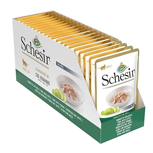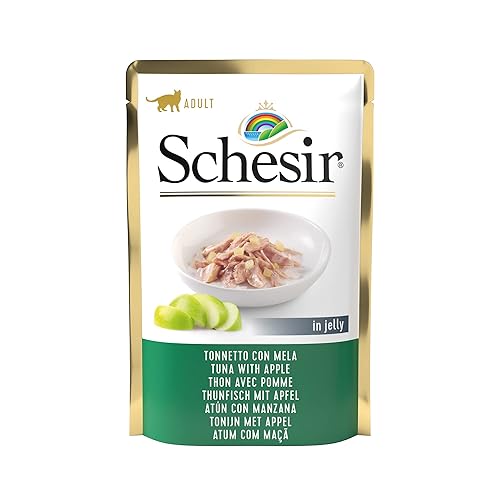 Schesir, Nourriture Humide pour Chats Adultes au goût Ton avec Pomme préparée en gelée Douce –