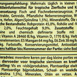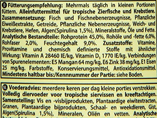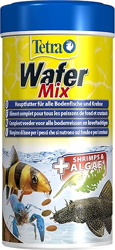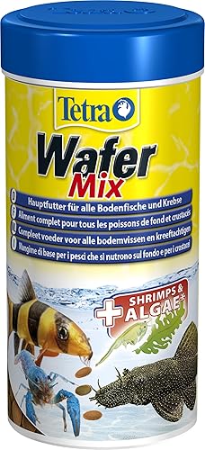 Aliment équilibré de haute qualité pour poissons de fond et crustacés. Mélange d’aliments complets pour tous poissons de fond et crustacés. Mélange de petits disques (« Wafers »), recommandés pour les poissons de fond carnivores (Corydoras, Botia,…), herbivores (Loricaridés) et les petits crustacés (crabes, crevettes,…) Le processus de fabrication de WaferMix permet une diminution notable de la pollution des aquariums car les wafers restent compacts sans se désagréger tant qu’ils ne sont pas entièrement consommés Les wafers sont des disques nutritifs compacts enrichis d’algue Spiruline et spécialement développés pour se dissoudre très lentement. Conseils d’utilisation : A distribuer plusieurs fois par jour en petites rations.