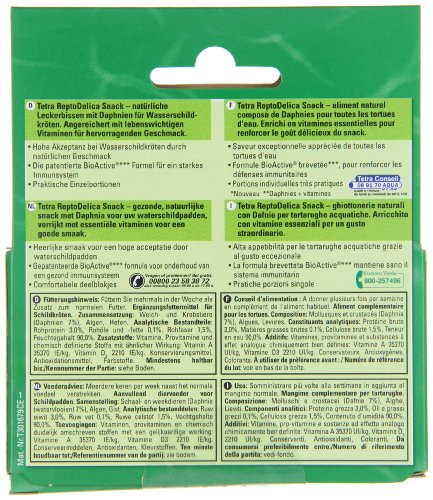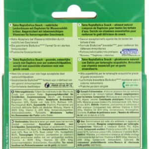 Description du produit Tetra – 190337 – ReptoDelica Snack Ingrédients Ingrédients limités Mode d’emploi Stocker dans un endroit frais et sec