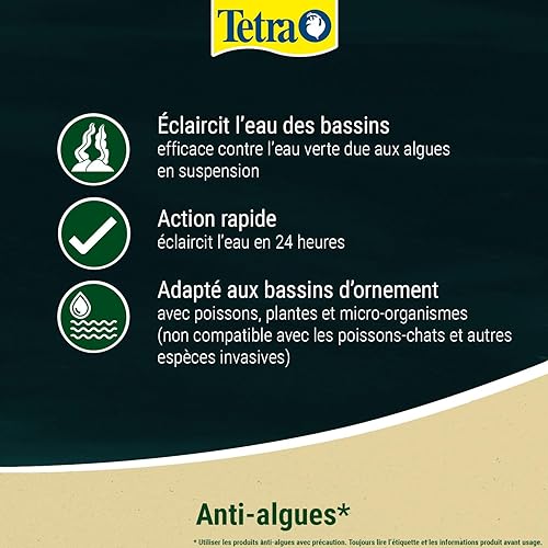 Description du produit Tetra Pond AlgoRem – Traitement de l’Eau des Bassins de Jardin – Elimine l’eau verte et Limite la formation des Algues – Favorise une Eau Claire et Saine en 24H – 250 ml Mode d’emploi Bien lire la notice d’utilisation