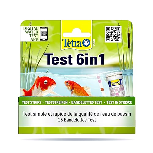 TETRA Pond Test 6in1 – Bandelettes de Tests de l’Eau de Bassin de Jardin – 1 boîte (25 Bandelettes)