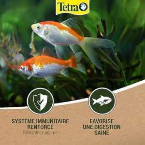 Description du produit Mélange complet pour tous les poissons de bassin composé de trois types de sticks différents au service d’une alimentation variée. Les sticks flottants ramollissent rapidement et sont ainsi faciles à manger. Ils contiennent tous les nutriments, oligo-éléments et vitamines essentiels ainsi que des caroténoïdes de haute qualité pour une alimentation complète biologiquement équilibrée. Grâce à la biodisponibilité élevée de ses nutriments, Tetra Pond Variety Sticks est hautement digestible et ne pollue pas l’eau.Idéal pour l’alimentation quotidienne de tous les poissons de bassin Ingrédients Ingrédients limités Mode d’emploi Lire la notice d’utilisation
