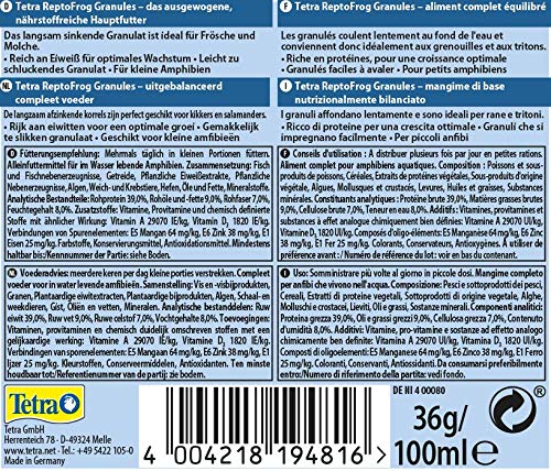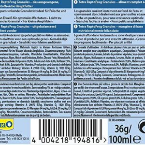 Description du produit Tetra ReptoFrog Granules 100 ml Ingrédients Ingrédients limités Mode d’emploi Lire la notice d’utilisation