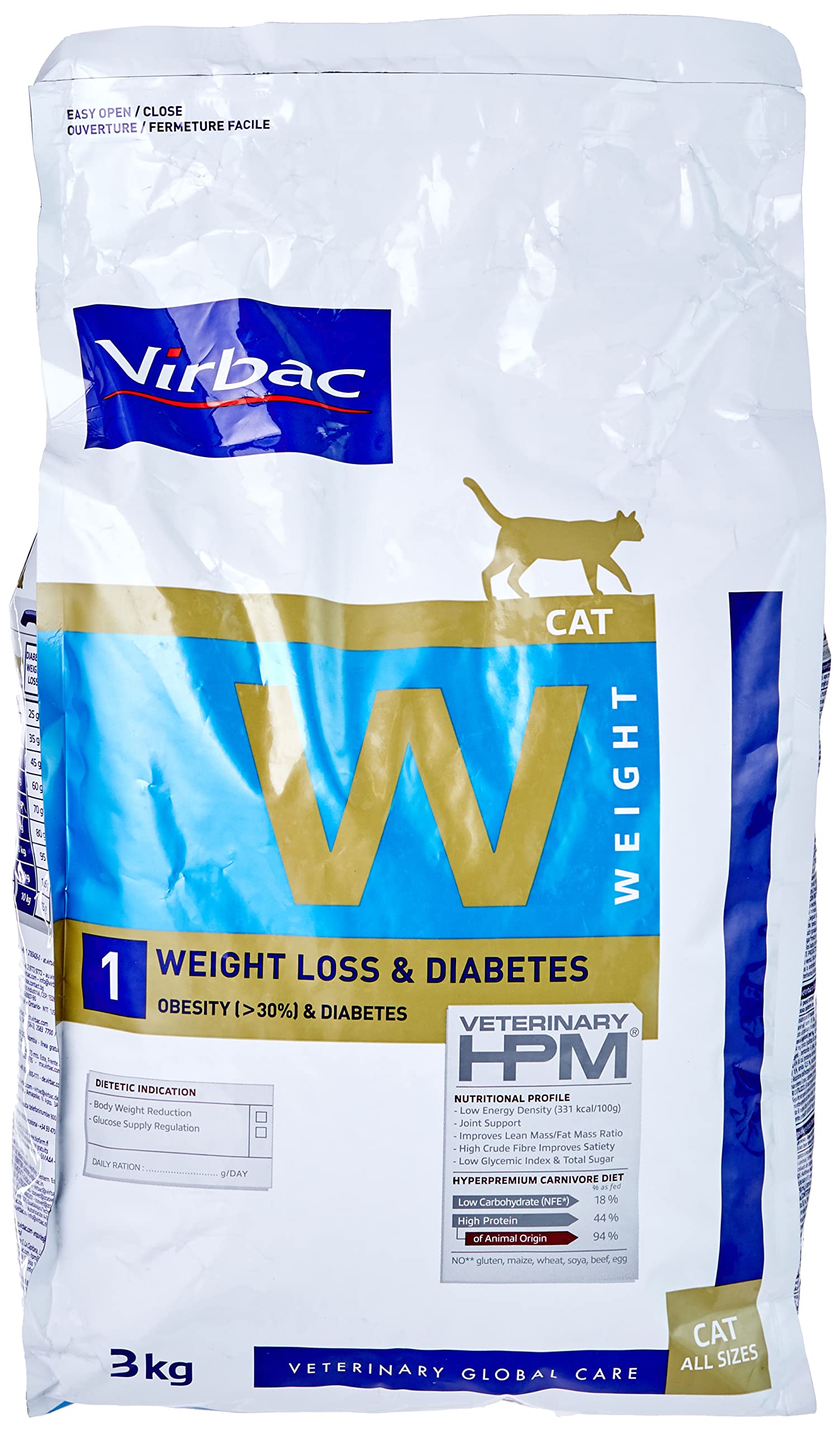 Virbac Vet Hpm Cat Weight L/D Nourriture 3 kg pour Chat