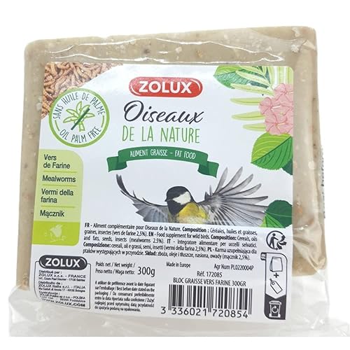 Zolux -Bloc de Graisse vers de Farine. 300 GR. pour Oiseaux de la Nature
