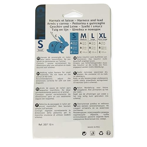 La gamme de sellerie pour petits mammifères « Casual » est conçue pour s’adapter aux lapins, cochons d’Inde, furets et rats, jeunes et adultes. Idéal pour la promenade quotidienne, le kit est composé d’un harnais et d’une laisse en nylon simples et robustes. Le réglage du harnais s’effectue au niveau du cou et du poitrail et la fermeture se fait à l’aide d’un clip. La laisse est équipée d’un mousqueton en métal et mesure 1, 20 m. 120x15x210 mm