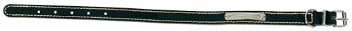 Le cuir piqué de haute qualité assure non seulement une résistance remarquable face aux aléas du quotidien, mais aussi un confort optimal pour le cou de votre animal, évitant les frottements désagréables. Sa couleur noire intemporelle et son design simple s’adaptent à toutes les races et à tous les styles, conférant à votre chien une allure distinguée. La boucle et l’anneau en métal robuste garantissent une fixation sécurisée de la laisse et des médailles.