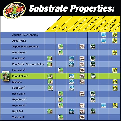 Recommandé pour les serpents, les amphibiens, les tarentules ou les invertébrés, mélanger avec la terre ECO EARTH de Zoo Med pour les espèces tropicales de tortues ou tortues boîte.Remarque: la poussière contenue dans ce produit est minime et serait certainement éliminée avec l’ajout de toute humidité. En règle générale, le sol forestier est utilisé pour aider à créer des environnements tropicaux car le paillis de cyprès est excellent pour retenir l’humidité. Ici, nous vaporisons quotidiennement nos animaux (même les espèces du désert) et gardons au moins un microclimat humide disponible car les tortues (en particulier les jeunes tortues) sont aptes à s’autoréguler et à trouver de l’humidité dans leur environnement naturel.